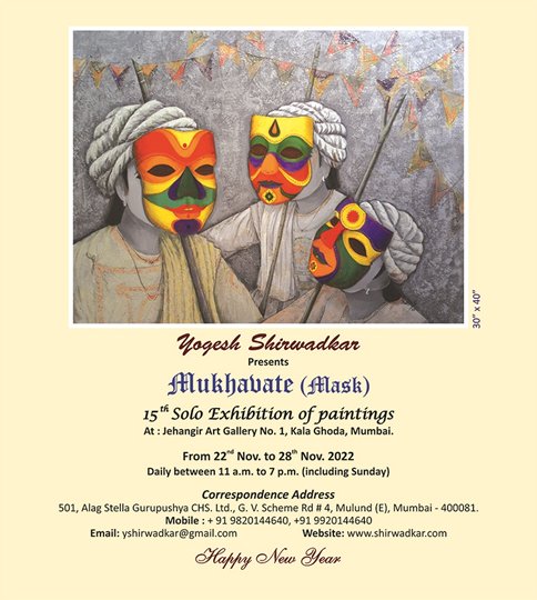 The recent work presented by a contemporary artist Yogesh Shirwadkar in his 15th solo art exhibition presently under display at Jehangir Art Gallery, Mumbai reveals subtle nuances of vivid masks and their relevance as well as sanctity in human life. He has artistically adorned various works with the requisite tonal harmony and rhythm of apt colours and their resonance in order to depict the desired visual effects in sensitive human minds in the conducive environments.