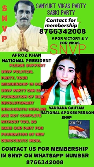 VANDANA GAUTAM IS THE NATIONAL GENERAL SECRETARY AND NATIONAL SPOKESPERSON OF SANYUKT VIKAS PARTY (SNVP) IN INDIA