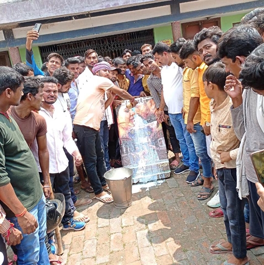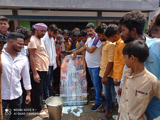 भोजपुरी के रजनीकान्त हिट मशीन खेसारी लाल यादव की चोरी चोरी चुपके चुपके के पोस्टर को फैन्स ने दूध से नहलाया