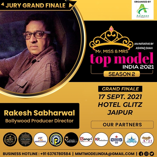 On 17th Sept Finale Of Miss & Mrs Top model 2021 was held in Jaipur. Mr Rakesh Sabharwal Bollywood Producer Director of Prince Movies was invited as Jury with other 4 Jury members. Actress Model Ragini Chaurasia from Mumbai, Dr Pareen Somani from UK, Dr Shalini Rajender Sharma along with Ruby Khan made the presence felt and glamourised the show. Crowning was Done by Mr Rakesh Sabharwal and other respectable Jury Members.