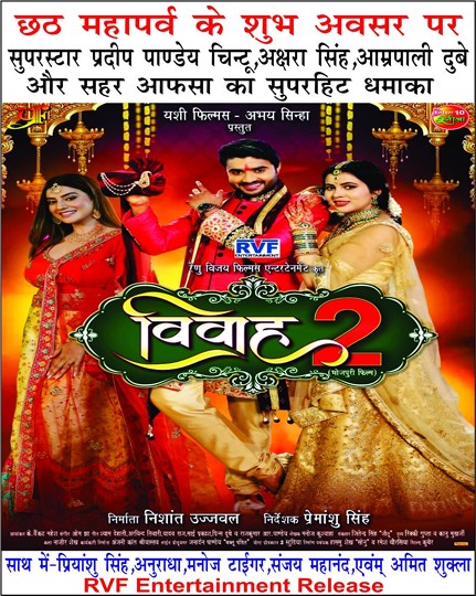 भोजपुरी पर्दे पर पारिवारिक फिल्मों का दौर वापस लाने वाली फिल्म ‘विवाह’ का सीक्वल ‘विवाह 2’ इस छठ पर आने की तैयारी कर रहा है। विवाह 2 को महापर्व छठ के शुभावसर पर सिनेमाघरों में दस्तक देने जा रही है। फिल्म ‘विवाह 2’ का निर्माण यशी फिल्म्स के बैनर तले किया गया है। इसको अभय सिन्हा ने प्रस्तुत किया है। विवाह 2 का निर्देशक प्रेमांशु सिंह ने किया है और निर्माता निशांत उज्ज्वल हैं। फिल्म में भोजपुरी फिल्मों के सुपरस्टार प्रदीप पांडेय चिंटू का पारिवारिक, रोमेंटिक, इमोशनल और एक्शन अवतार देखने को मिलने वाला है। फिल्म प्रदीप के अपोजिट तीन अभिनेत्रियां है इसमें आम्रपाली दुबे,अक्षरा सिंह और सहर आफसा नजर आने वाली है। फिल्म की कहानी लव ट्रायंगल पर आधारित है।