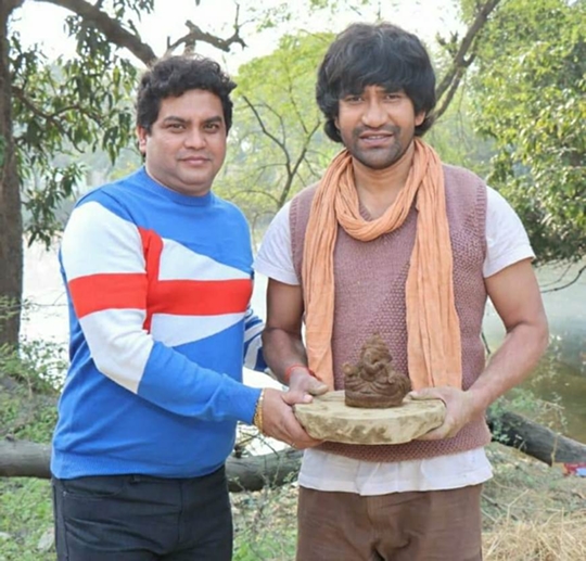 निरहुआ ने फ़िल्म “गोबर धन” के निर्माता जयंत घोष को दिया गाय के गोबर से बनाकर गणेश जी की मूर्ति