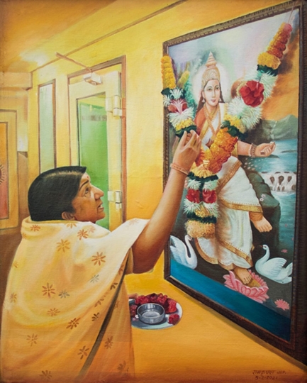 ‌ While painting Gandhiji in same way, he has painted 230 patriots of Gandhi’s contemporaries at background & Gandhiji in foreground, trying to depict that Gandhiji was main source of inspiration for them. Here also collecting data of 230 patriots & their images is difficult task & painting them is another. He has painted all his paintings in oil on canvas medium with skill & commendable patience. There are many paintings on Lataji hence this show is titled “चित्रलतिका “. Apart from Lataji & Gandhiji artist has painted other subjects also like Lord Ganesha, Lord Hanuman, Lord Ram-Seeta, Lord Buddha, Mother Teresa, little girls & others.