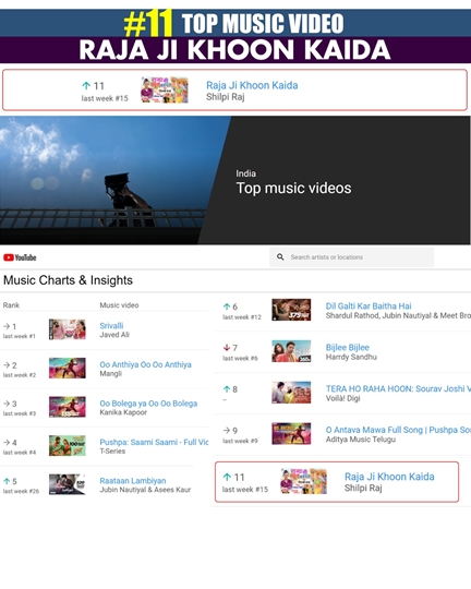 इंडिया टॉप म्यूजिक चार्ट में 11वे नंबर पर शिल्पी राज और नीलम गिरी का ‘राजा जी खून कई द’, वही श्वेता महारा का ‘रेलिया रे’ ने 15 स्थान पर बनाई जगह