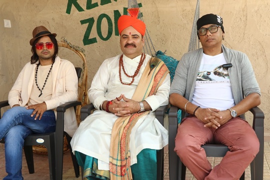 Ashish Goswamiji chief Pujari of Shri Banke Bihari Temple in Vrindavan shoots for the banner of Holi festival in Mumbai