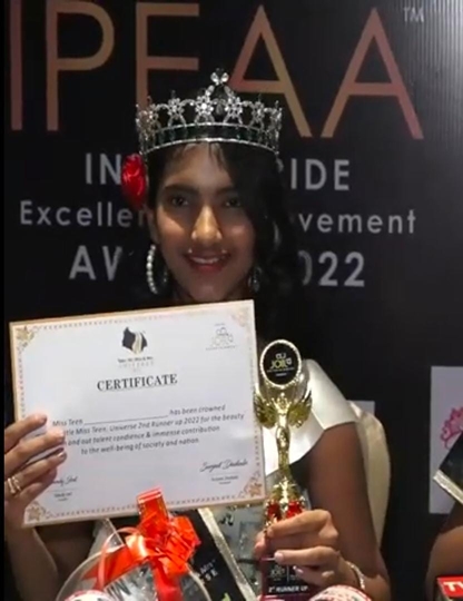 I first participated in a fashion show in 2021, when I began my journey. I did so just because I enjoyed it, not because I had a goal in mind, and then I won 1st runner up at Stardom India kids fashion show 2021; from there, I gained confidence and hope in my inner mind that yes, I have the potential in me and I can do this. After this, as an encouragement booster, I also gained 2 nd second place in the Miss Teen Universe 2022 held at WE Hotels in Pune. I aspire to become a successful actress and a model.