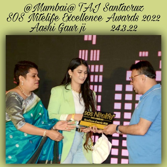 पॉपुलर टीवी सीरियल भाभी जी घर पर है में हप्पू सिंह की साली के किरदार से फेमस हुई ऎक्ट्रेस आशी गौर को हाल ही में मुम्बई के ताज होटल में भव्य रूप से आयोजित “एसओएस नाइटलाइफ़ एक्सेलेंस अवार्डस 2022” से बतौर “राइजिंग स्टार टीवी एंड फ़िल्म ऎक्ट्रेस” नवाजा गया। यह अवार्ड उन्हें फ़िल्म निर्माता खेमचंद भगनानी के हाथों मिला। उल्लेखनीय है कि खेमचंद भगनानी गोविंदा, करिश्मा कपूर स्टारर हीरो नम्बर 1 सहित कई फिल्मों के को प्रोड्यूसर रहे हैं।