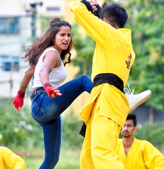 Originally an expert in Taekwondo having taken part in multiple tournaments, Pooja extensively trained herself in Jeet kune do for her role in LADKI.