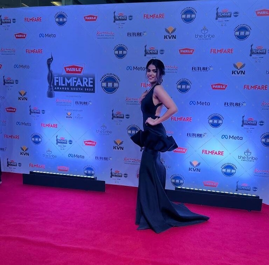 The diva recently scorched the red carpet of the Parle Filmfare Awards South 2022 which was held in Bengaluru last week. She was seen sharing sweet nothing the actors and celebrities like actor R Madhavan, director and producer Anand Kumar and others from the film fraternity.