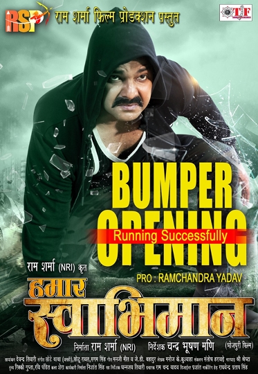 फिल्म की अपार सफलता को लेकर प्रोड्यूसर राम शर्मा (एनआरआई) ने कहा कि ‘हमार स्वाभिमान’ एक सामाजिक और पारिवारिक फिल्म है। इस फिल्म में बहुत कुछ नया दर्शकों को देखने के लिए है। फिल्म की कहानी और पवन सिंह की अदाकारी इसकी यूएसपी है। उस पर अंजना सिंह के साथ पवन सिंह की केमेस्ट्री भी दर्शकों को खूब पसंद आ रही है। हमने इसका निर्माण भव्य पैमाने पर किया है, ताकि एक बेहतरीन भोजपुरी सिनेमा दर्शकों को देखने को मिले। फ़िल्म को बम्पर ओपनिंग देने के लिए सभी को तहेदिल से धन्यवाद देते हुए आभार व्यक्त करता हूँ। आप सभी का प्यार, आशीर्वाद हमेशा बना रहे।