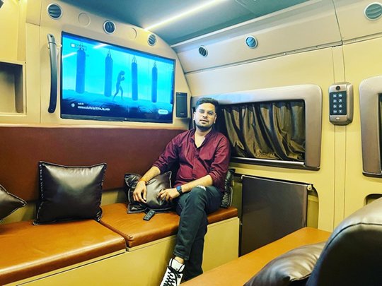 These Caravan comes with various amenities It has everything from a living room, a small bedroom, a kitchen, a bathroom, and a ‘terrace’ space on the roof of the vehicle. Guess what, you can also choose to post some live updates as the caravan comes equipped with WiFi too. They also provide a driver & cleaner.