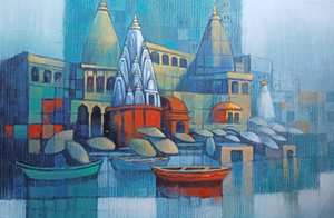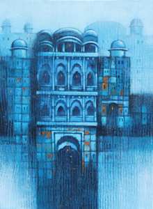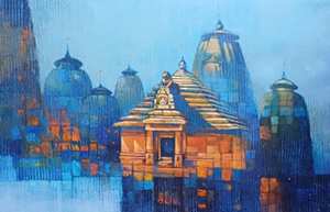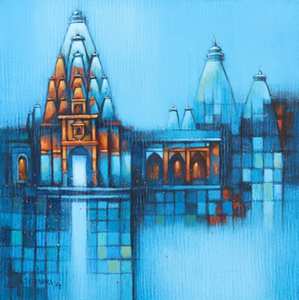 The present series in Acrylic Colours on canvas throws light on his artistic impressions and aesthetic perceptions about various historical buildings, their architectural details & the culture & heritage associated with them at various places. He has focussed on presenting the various relevant details at these places in his expressive style using apt colour combinations and their harmony. He has also highlighted the relevance and sanctity of various temples, religious shrines and places of worship, the heritage and cultural traditions there and their significant peculiarities. He has made artistic use of morning light, afternoon light, evening light alongwith shades, shadows, reflections and illumination effects at the desired locations in the work. He has made use of warm and cool colours and achieved their balance for aesthetic and artistic decoration of his work in the relevant perspectives. He has also used various geometrical forms and achieved their rhythmic unison in the work at the strategic arenas in order to get the desired visual perspectives in his work. These works made in an aesthetic and artistic style using acrylic colours on canvas certainly share a dialogue with the viewers leading to their warm response and appreciation.