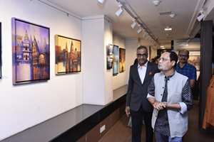 Recent work of a contemporary artist, Jitendra R.Divte in Acrylic colours on canvas has been displayed in a solo art show in Jehangir Art Gallery, M.G. Road, Kala Ghoda, Mumbai 400 001 from 19th to 25th February, 2024 between 11 am to 7 pm. It will be open for free public viewing there during the gallery timings and showcase his artistic perceptions about the various temples, religious shrines, vivid places of worship, the buildings of historical and social heritage and relevance etc. in his style via apt colour combinations to suit their thematic relevance in different perspectives of visual fine arts.