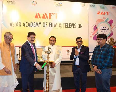 Noida, India:  The Asian Academy of Film and Television (AAFT) inaugurated its 122nd batch at Marwah Studios, Noida Film City, with a profound message emphasizing the importance of spirituality in life and education. Dr. Sandeep Marwah, President of Marwah Studios and Chancellor of AAFT University, addressed the new batch with an inspiring speech, reminding everyone of the spiritual aspect of life. “Just as a candle cannot burn without fire, men cannot live without a spiritual life,” Dr. Marwah remarked, emphasizing that the pursuit of creativity and knowledge must be accompanied by an understanding of the deeper, intangible elements that give life meaning.