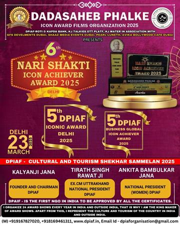 On 23rd March the *6th Nari Shakti Icon Achiever Award* will be held This award show, which has been running for the last five years, will honor women who have made significant contributions to society and the nation, regardless of the field they belong to Hundreds of remarkable women will be recognized for their achievements. In addition to this the *DPIAF- Iconic Award Delhi* & *DPIAF- Business Global Icon Achiever Award* will be presented to individuals who have excelled in their respective fields and made significant contributions.